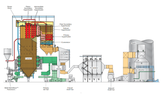 Hình: Hệ thống lò than phun 660 MW do công ty B&W thiết kế